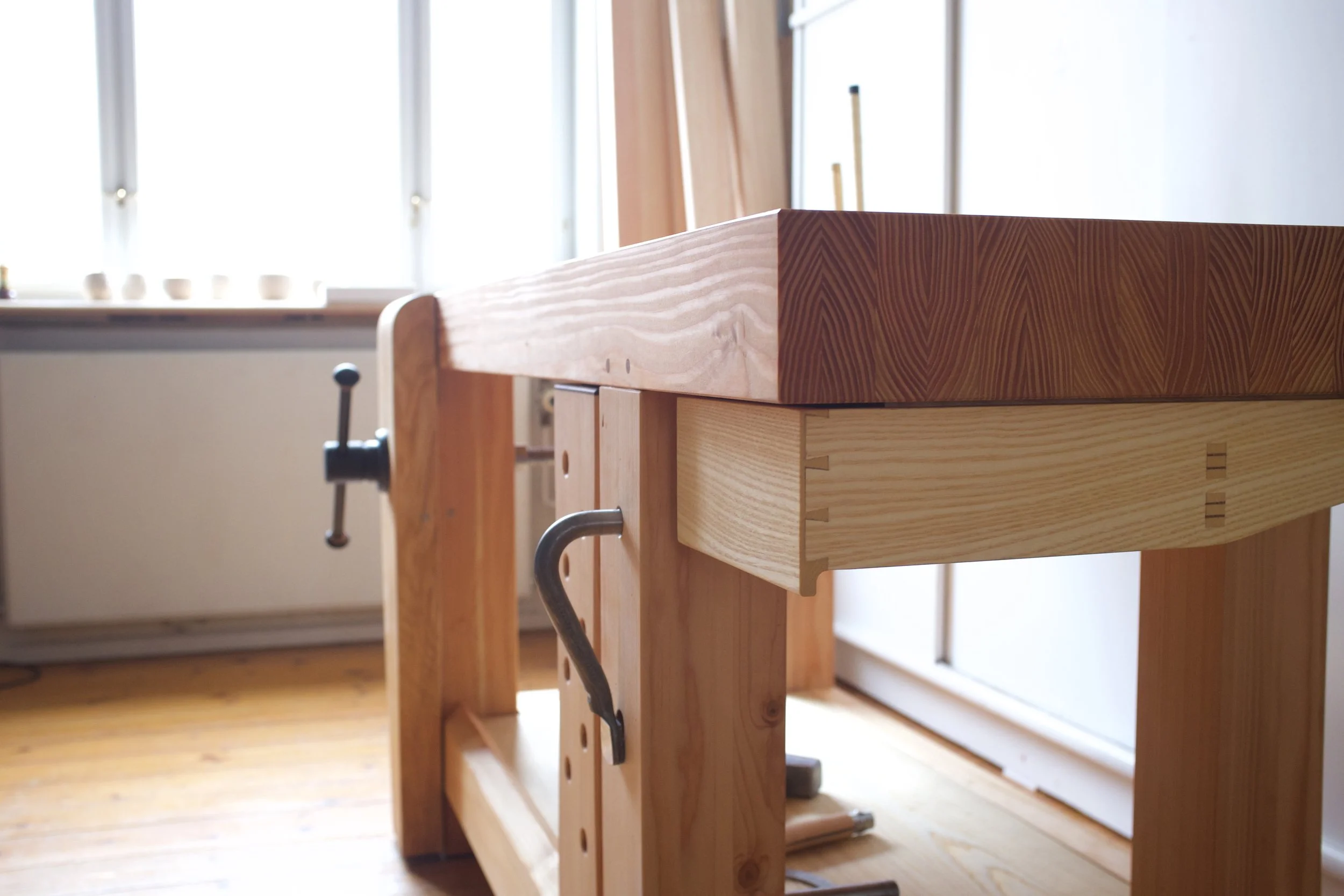 – Fra idé og research af traditionelle franske høvlebænke til snedkerarbejde. Udført i dansk douglas og ask direkte fra savværk.